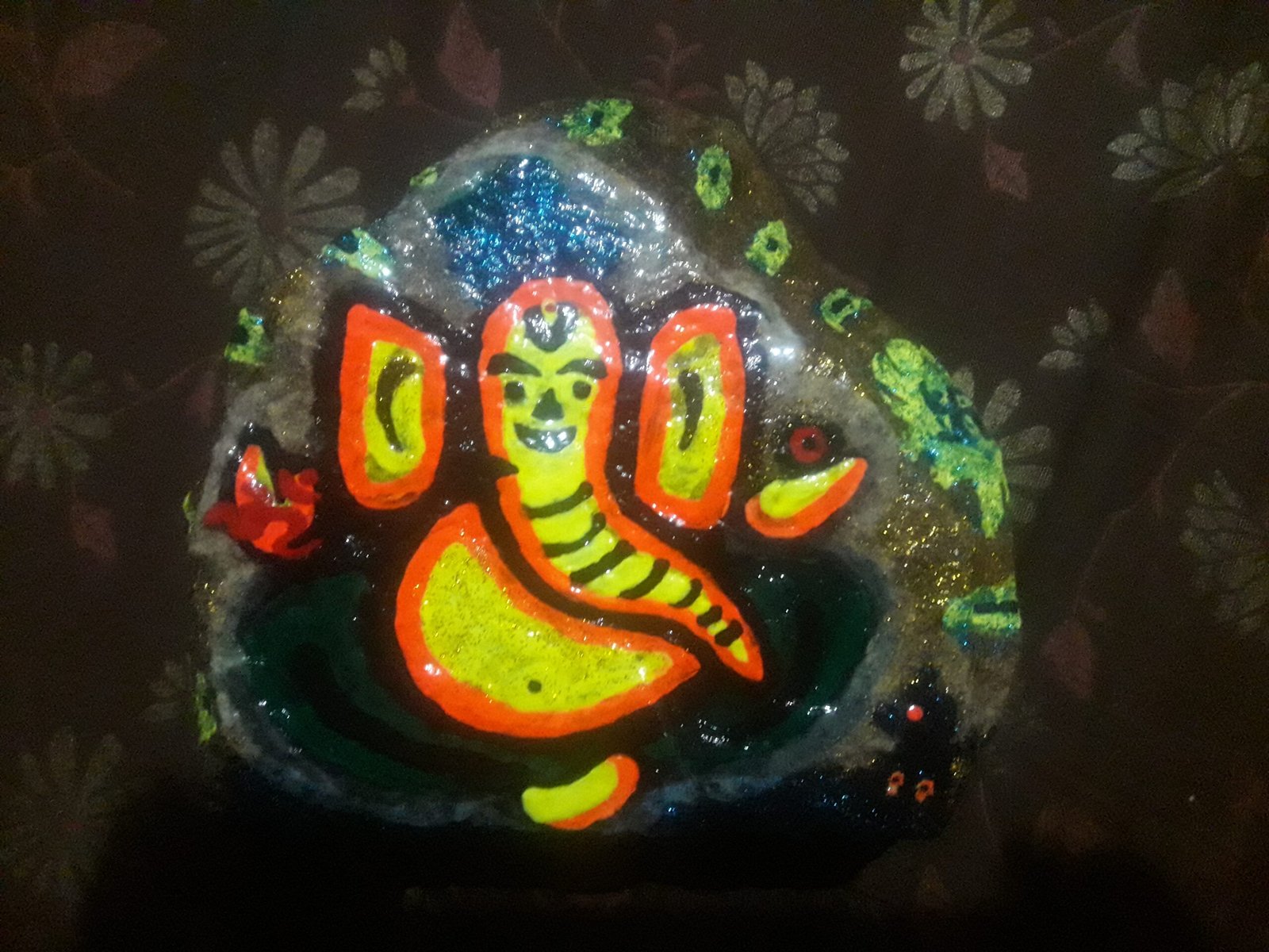 यह घर पे पत्थर पर हाथों से बनाया गया कलरफूल आर्ट है, इसकी खास विशेषता यह है की यह रात को चमकता है, जैसे की भगवान् का कोई चमत्कार। यह एक बेस कीमती आर्ट है, जो बहोत सारी मेहनत से तैयार होता है। भगवान् गणेश का यह आर्ट सबको अपनी और खिसता है, और रात को जादुई तरीके से चमकता है जैसेकि जुगनू जो फ्री में लाइफटाइम रोशनी देता रहेगा । Glowing God Ganesha – HandMade Rock ART is a captivating piece that embodies the divine aura of Lord Ganesha. Crafted with utmost precision and care, this exquisite artwork radiates a luminous glow, adding a touch of enchantment to any space. Experience the spiritual essence and artistic brilliance of this unique creation. –